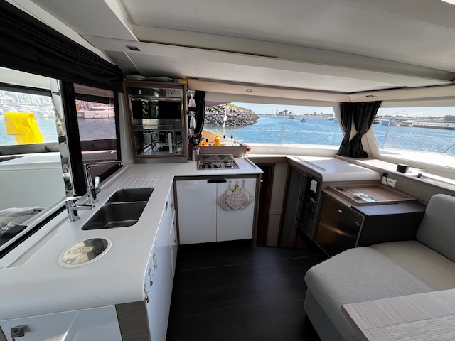 Eau chaude Douchette de cockpit avec Eau chaude 2 Echelles de bain Table de cockpit Four Frigo Plaque gaz 3 feux Four micro ondes Batterie de cuisine Prise allume cigare Prise 220v 2 WC électrique dans les salles de bain Réservoir d'eau : 2x265 L |